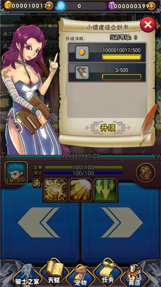 1、在本站下载骑士突突突游戏,点击箭头可以一直移动,点击建造,可以对小镇进行升级。