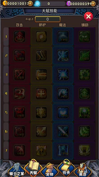 4、天赋技能等级介绍。