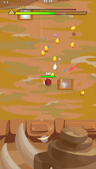 3、主动拾取蓝色经验提升等级,并通过走位牵制敌群,让追踪飞弹和技能更高效地命中目标。